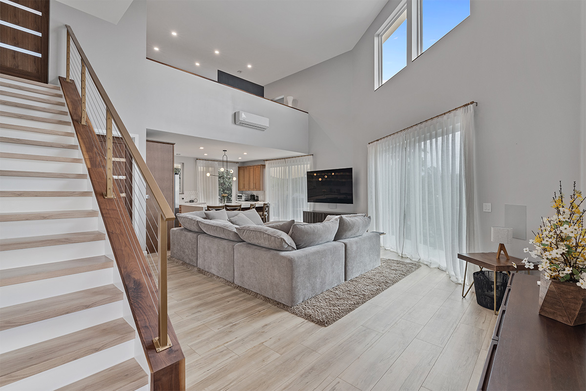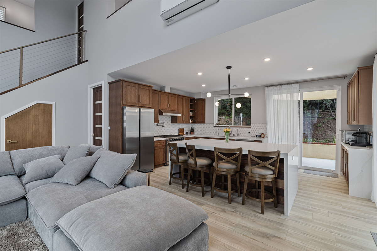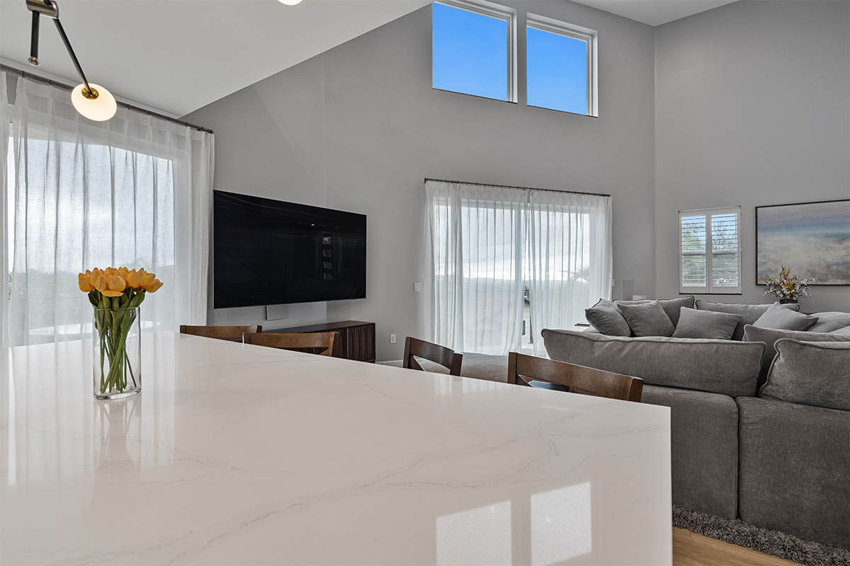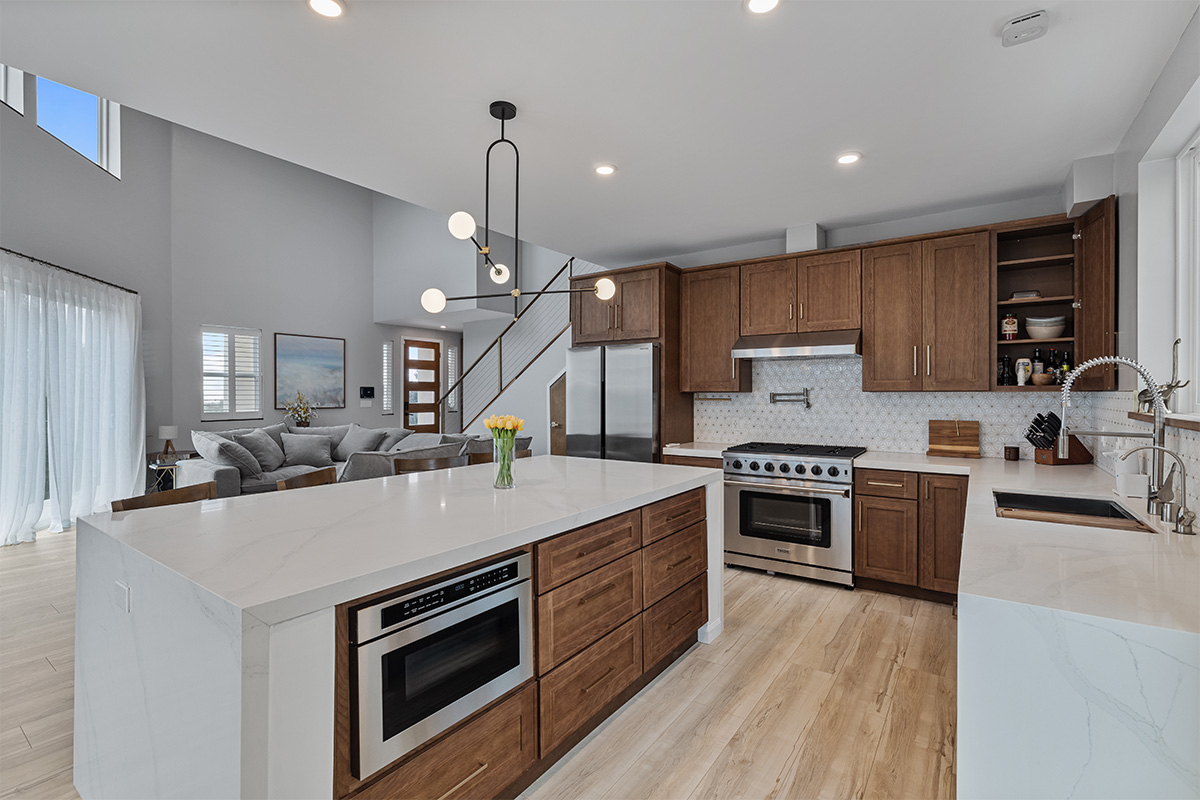 The open-concept living area is perfect for entertaining, featuring a gourmet kitchen with stainless steel appliances, a spacious living room.
